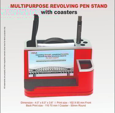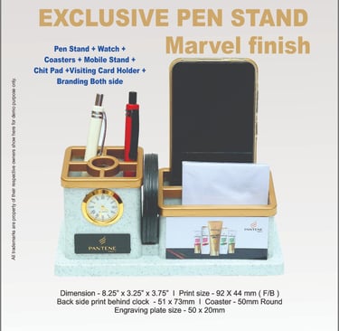 Skon Gifts Private Limited is one of India's most trusted Manufacturing company, we offer Multipurpose pen stand, Multipurpose Table desk products, Multipurpose Paper weight, Table clock with Pen stand, paper weight with pen stand, mobile holder with pen stand, triangle shaped plastic pen stand with revolving, promotional pen stand with six coaster, revolving hexagonal pen stand with coaster set and promotional pen stand from India.