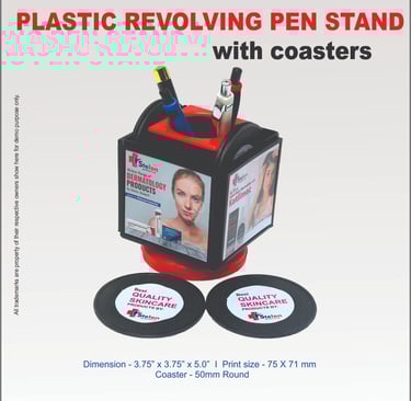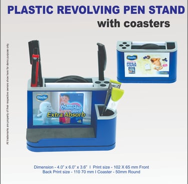 Skon Gifts Private Limited is one of India's most trusted Manufacturing company, we offer paper weight with pen stand, mobile holder with pen stand, triangle shaped plastic pen stand with revolving, promotional pen stand with six coaster, revolving hexagonal pen stand with coaster set and promotional pen stand from India.